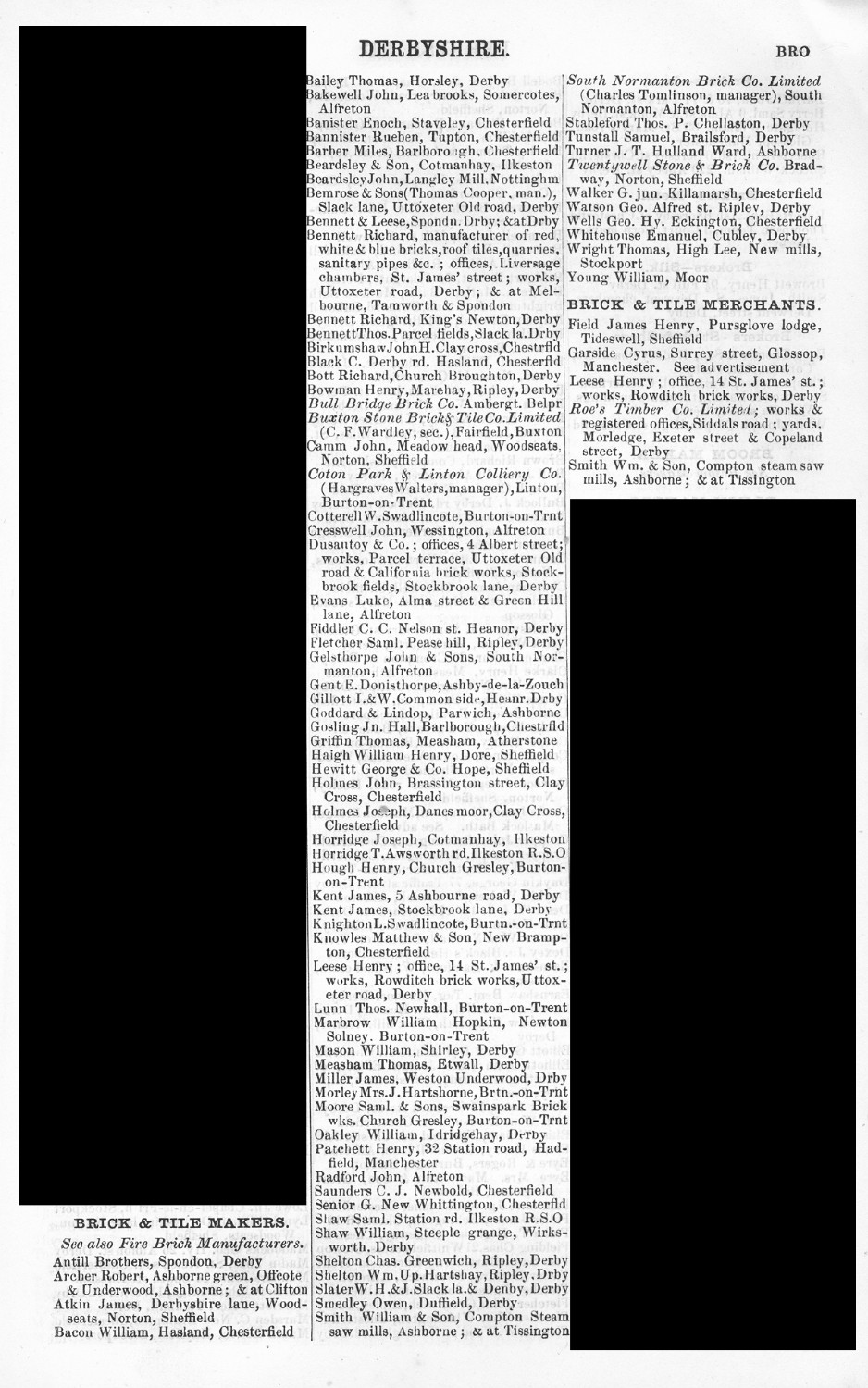 Kelly's 1881 Derbyshire Trade Directory.