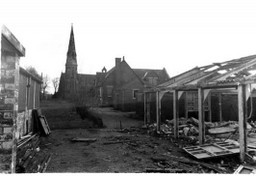 This next photograph shows the total dereliction of the site looking towards the church.