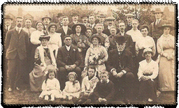 6. Arthur George Collier & Clara Wilson's wedding c.1910. Clara's brother Leslie Wilson (front-right) ran an insurance agency business on Moor Lane and his sons still run the business (+ estate agency) in the Market Place and Bolsover Cruises travel agency.