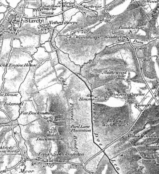 Also the route of the Old Peverel Road which ran through to Casrleton from Bolsover and here through the later site of the Collieries at Markham is shown.
