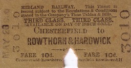 There was an 'old wives tale' that the station was rarely used to service passengers and that it was built solely to satisfy the whim of the Duke (of Portland) who then owned Hardwick Hall, you will see however, that the station was used by the general public as the tickets suggest. The tale also said that the Duke allowed the mineral line to be constructed but on the understanding that the station was for his own personal use. This is further laid to rest as you can see from the following poster sent to me by John Platts that it was part of the Doe Lea Extension Branch line and was a station along its route. Monday September 1st 1890.