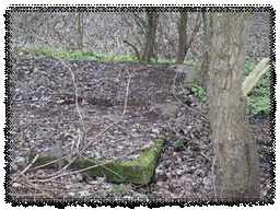 ![]() Foundations of the platform buildings. | ![]() Tunnel capping stones in Rowthorne car park. | ![]() Platform. |