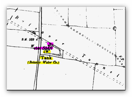 Water was also provided from a water tank at Hillstown on the site of the spoil heap for the western air shaft of the Bolsover Tunnel but was very small and soon out of use.